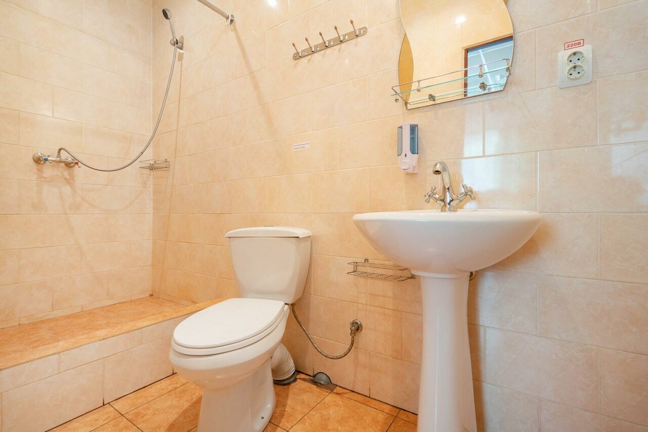 Душ туалет в номере. Полотенце, тапочки выдают.